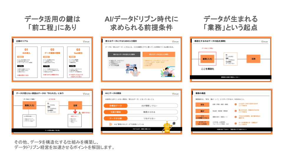 そこで、本セミナーでは、この停滞を打破するキーワードとして「データの構造化」に焦点を当て、