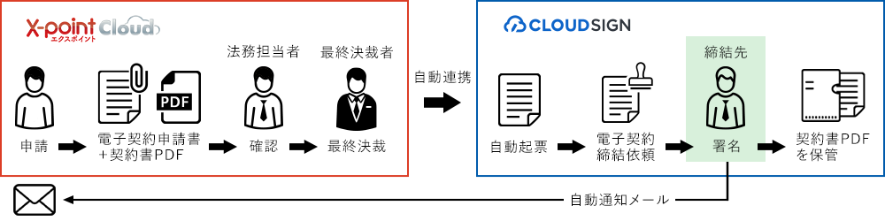 電子契約サービス「クラウドサイン」と「X-point Cloud」を自動連携するサービスです。