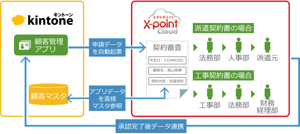 - kintoneアプリからデータを送り、X-point Cloudで書類の申請を行う